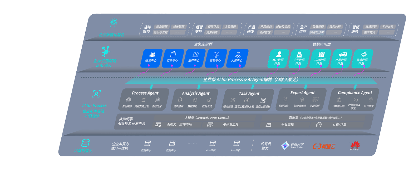 龙8头号玩家问学智车解决方案是一套基于AI技术的汽车行业智能化系统,,覆盖从底层算力到顶层AI应用的全栈方案。。。方案由算力层、、模型层和应用层组成:算力层,,方案支持多种一体机配置,,,,具备云端灵活部署、、、、多云适配以及动态优化计算资源的能力;模型层,,,,龙8头号玩家问学平台版提供了企业级AI应用一站式构建与管理平台,,,,支持基于后训练强化技术的汽车企业专属模型的训练、、、、评测和运营;应用层,,,龙8头号玩家问学DeepSeek版提供包括超级员工、、智能招采、、、、智能营销、、、、智能客服、、、AI for BI等一系列解决方案,,,可助力汽车行业实现数字化转型,,,让管理更智能、、响应更敏捷。。